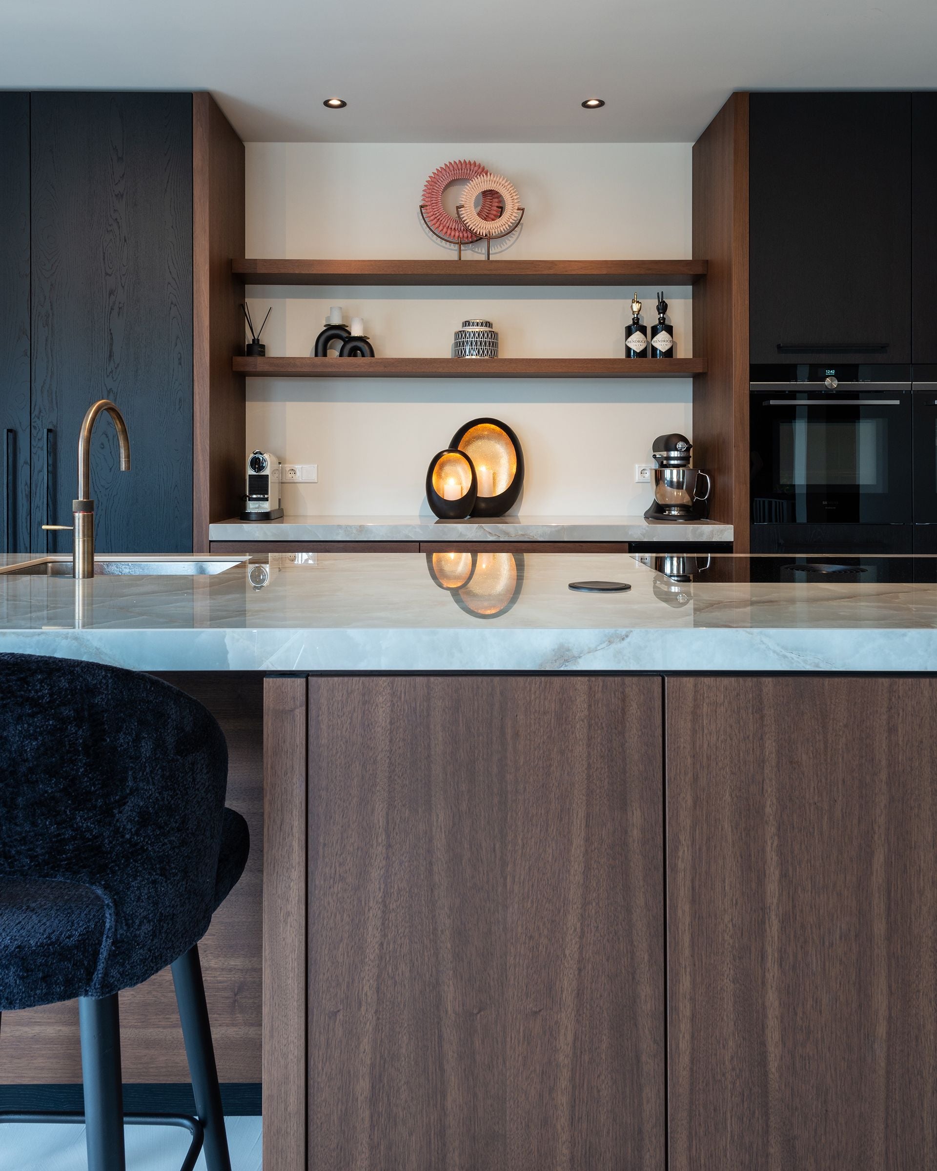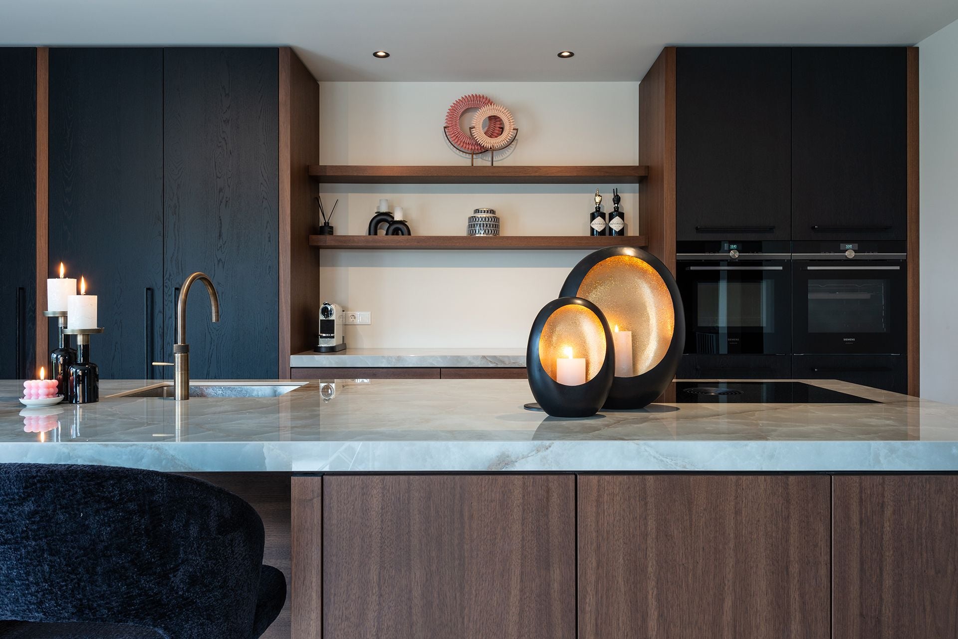 Candlestick Roann black with gold large is a chic, black candlestick with golden inside in 'egg' shape. An attractive addition to your interior! Nice to combine with Reen black with gold small.