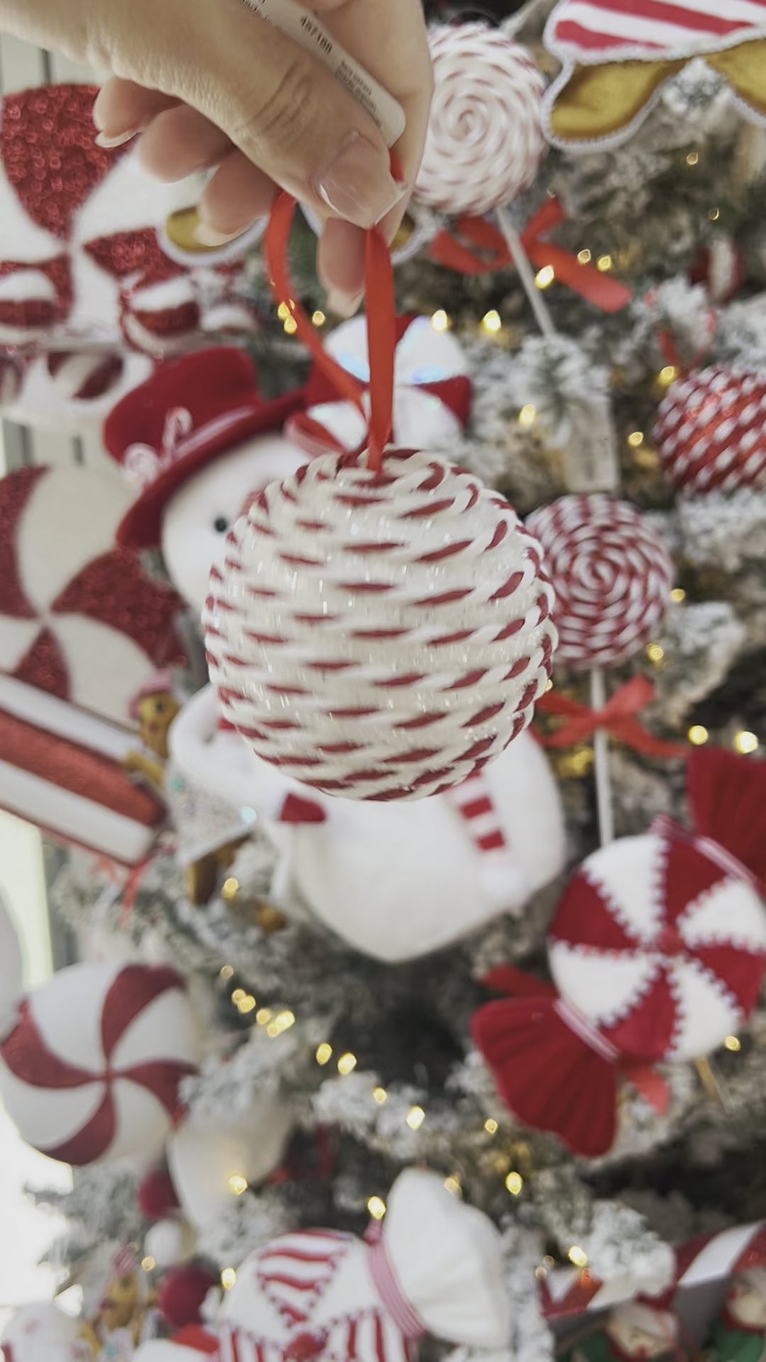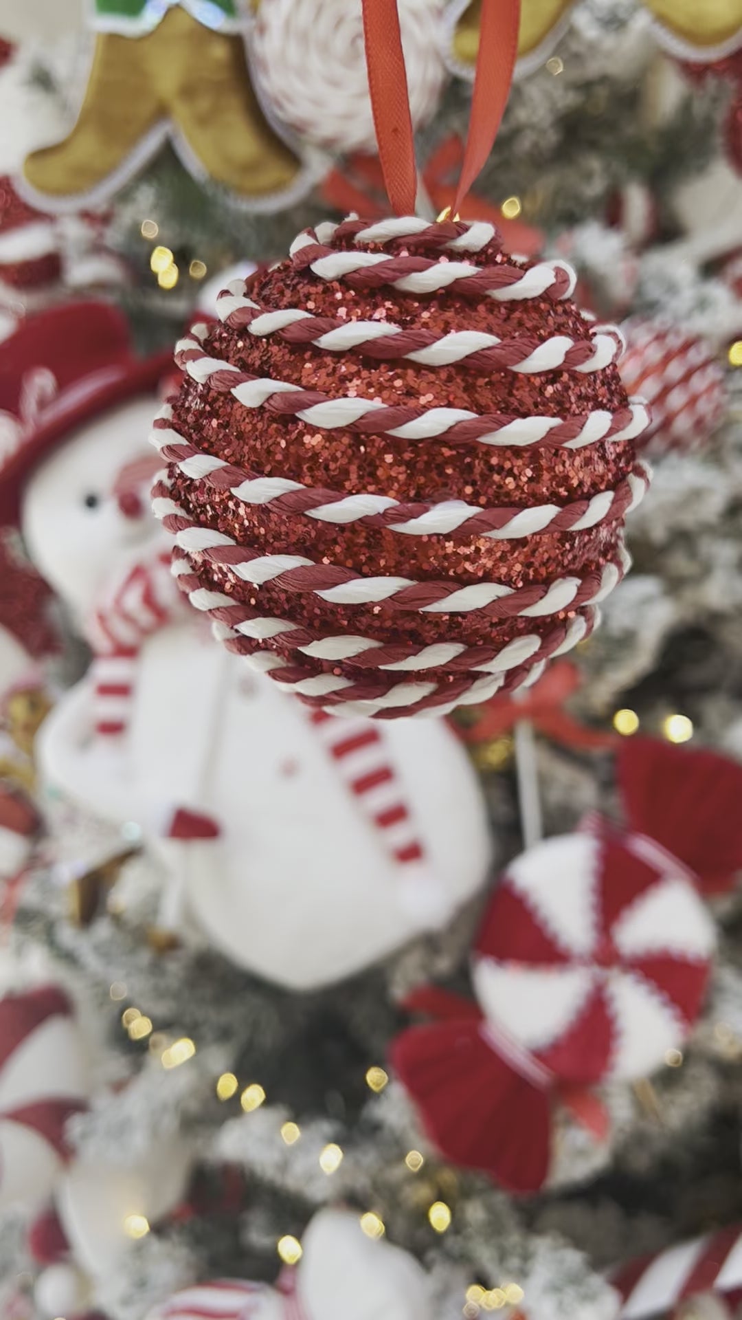 Candy Cane Red&White Bauble 8cm
