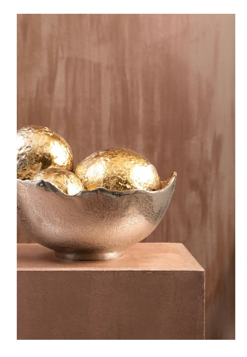 The Dion collection taps into the ombre metallic trend, its gradual colour transition from gold to silver gives a striking aesthetic. The Set of 3 Deco Balls can be displayed as standalone decor pieces or placed inside the Dion Bowls and Dishes to create a unique and beautiful arrangement."