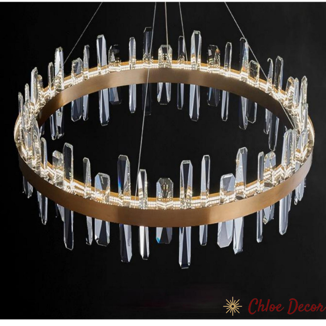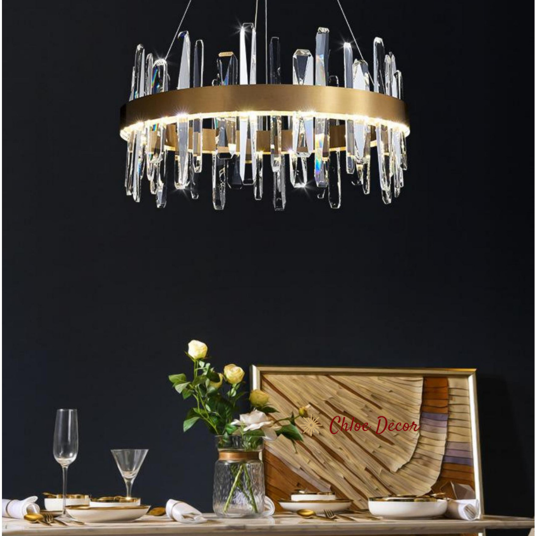 Gold Circle Hanging Ceiling Crystal Block chandelier