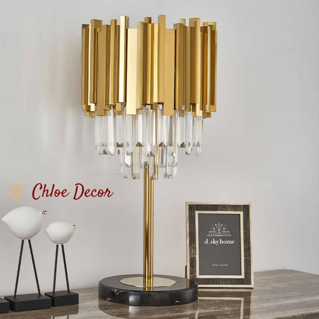 Luxury Gold and Crystals Table Lamp with Black Marble Base
